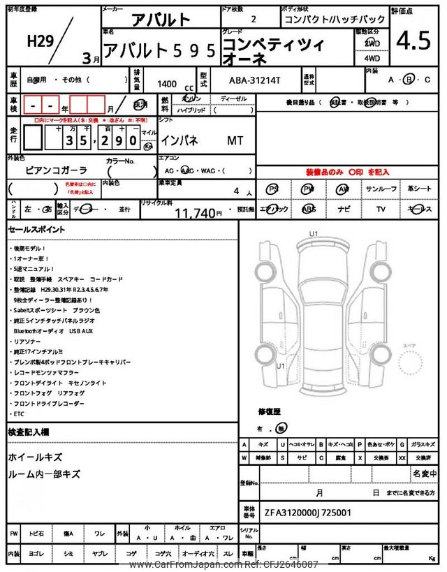 Abarth 595 2017 for sale in Tanzania - Tzs. 57,345,988 (Duty not paid)