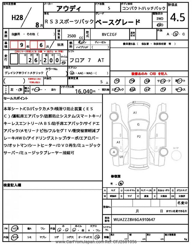 Audi RS3 Sportback 2016 for sale in Tanzania - Tzs. 101,776,696 (Duty not paid)