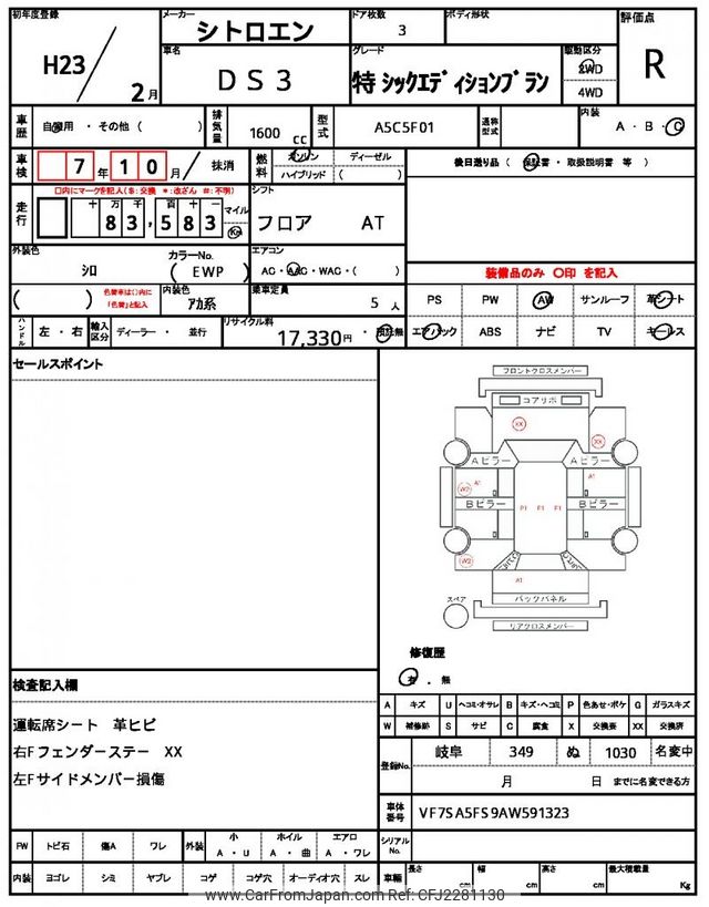 Citroen DS3 2011 for sale in Tanzania - Tzs. 12,911,805 (Duty not paid)