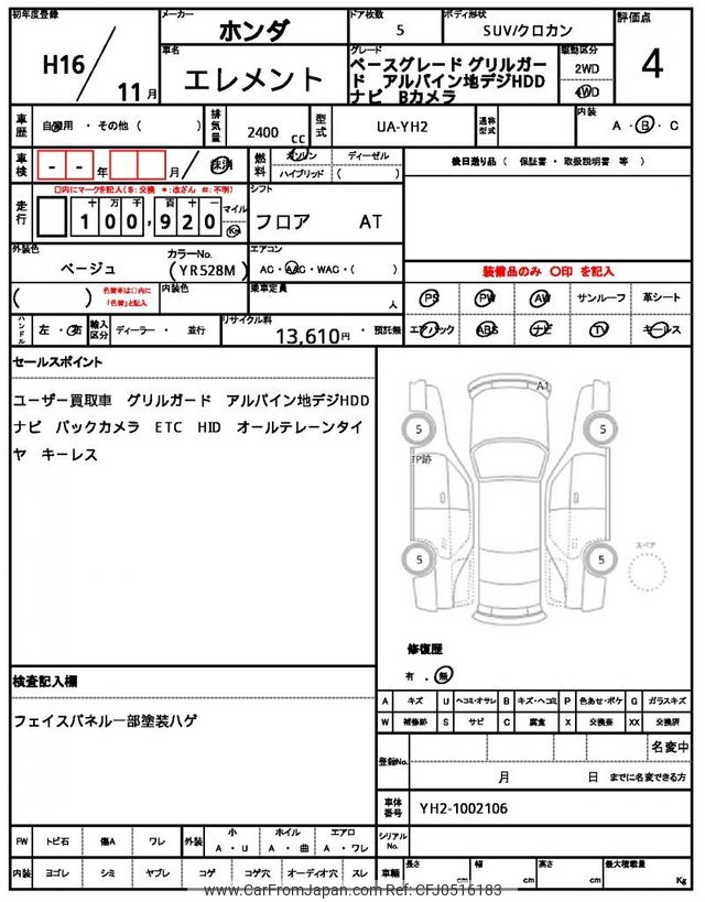 Honda Element 2004 for sale in Tanzania - Tzs. 42,401,760 (Duty not paid)