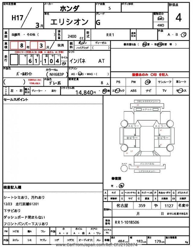 Honda Elysion 2005 for sale in Tanzania - Tzs. 16,535,113 (Duty not paid)