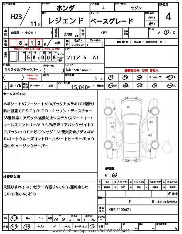 Honda Legend 2011 for sale in Tanzania - Tzs. 31,580,300 (Duty not paid)