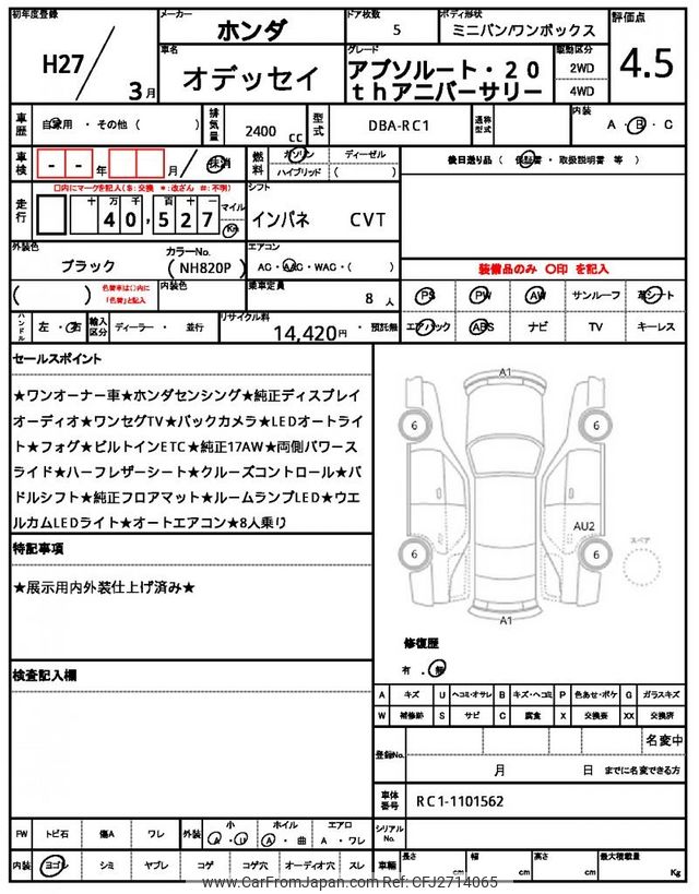 Honda Odyssey 2015 for sale in Tanzania - Tzs. 45,138,392 (Duty not paid)