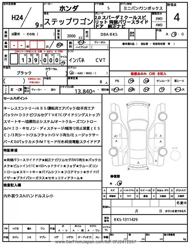 Honda stepwagon 2012 for sale in Tanzania - Tzs. 23,471,156 (Duty not paid)