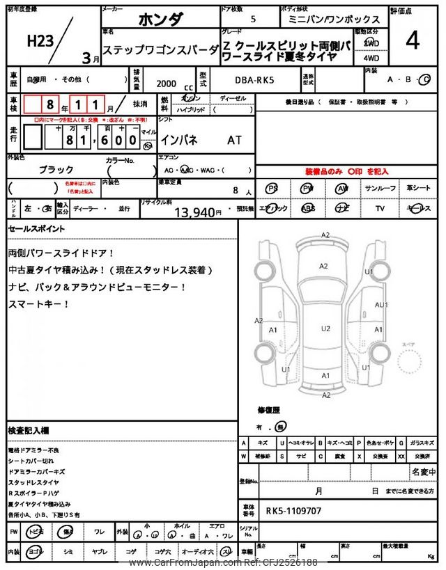 Honda Stepwagon Spada 2011 for sale in Tanzania - Tzs. 24,636,528 (Duty not paid)