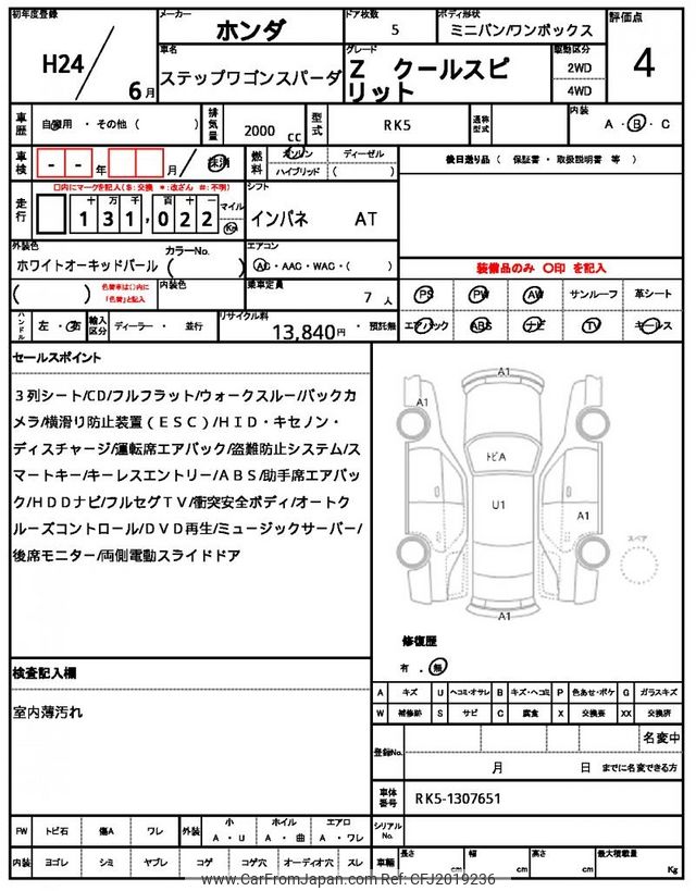 Honda Stepwagon Spada 2012 for sale in Tanzania - Tzs. 24,874,948 (Duty not paid)