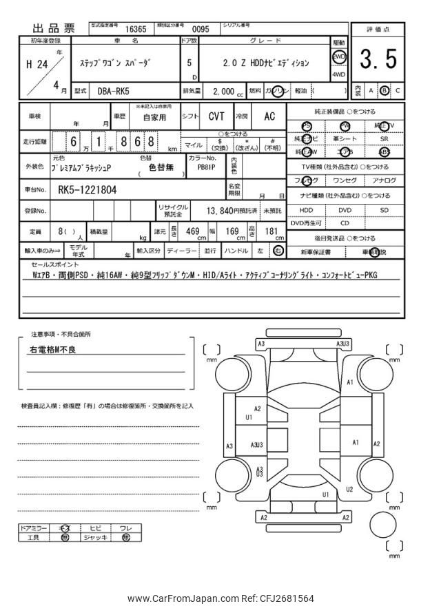 Honda Stepwagon Spada 2012 for sale in Tanzania - Tzs. 37,880,696 (Duty not paid)
