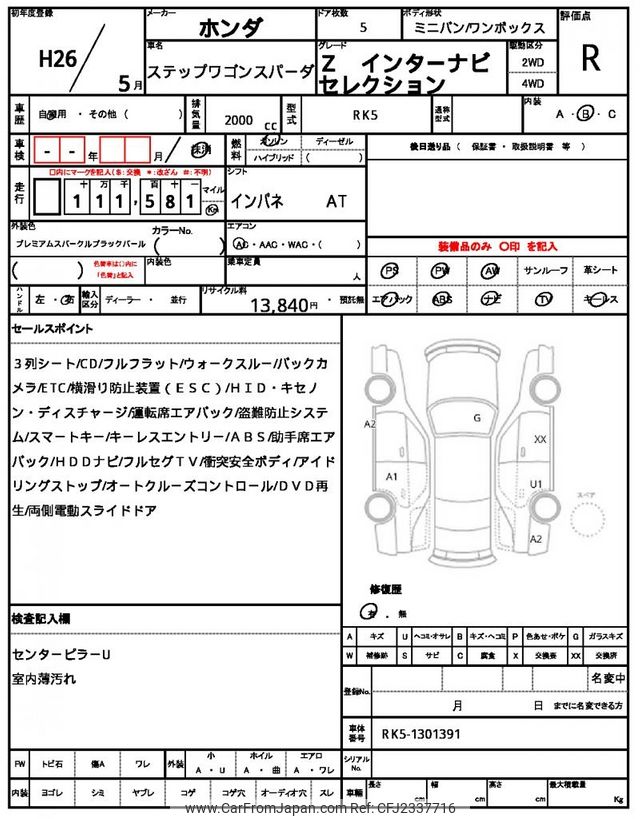 Honda Stepwagon Spada 2014 for sale in Tanzania - Tzs. 26,060,698 (Duty not paid)