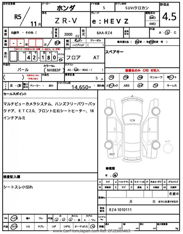 Honda ZR-V 2023 for sale in Tanzania - Tzs. 78,438,490 (Duty not paid)