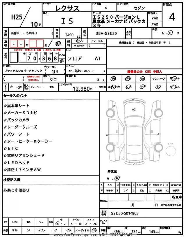 Lexus IS 2013 for sale in Tanzania - Tzs. 36,359,120 (Duty not paid)