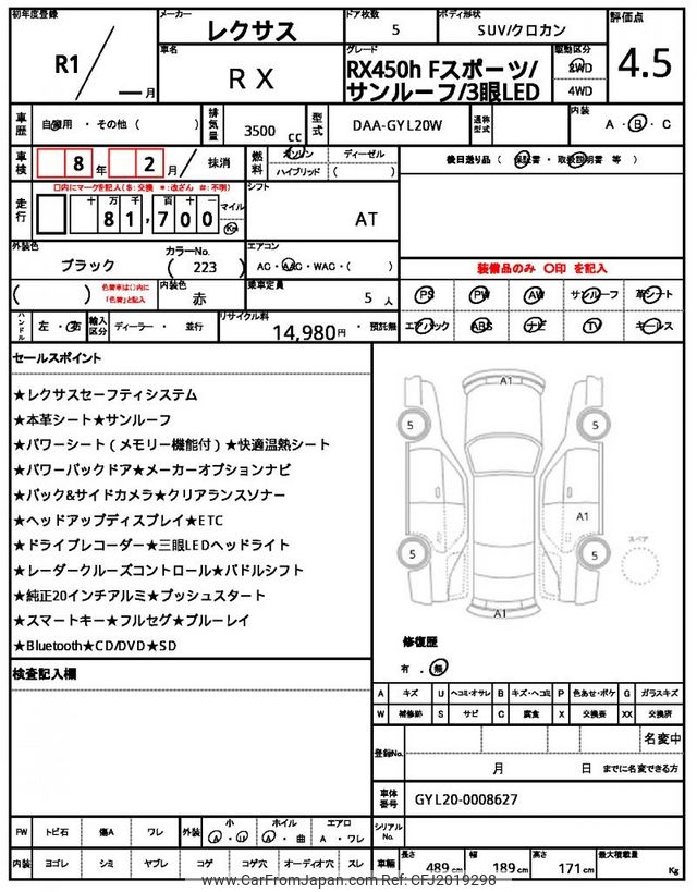 Lexus RX 2019 for sale in Tanzania - Tzs. 100,564,544 (Duty not paid)