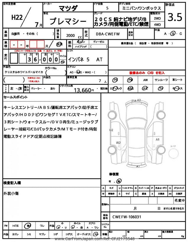 Mazda Premacy 2010 for sale in Tanzania - Tzs. 17,107,952 (Duty not paid)