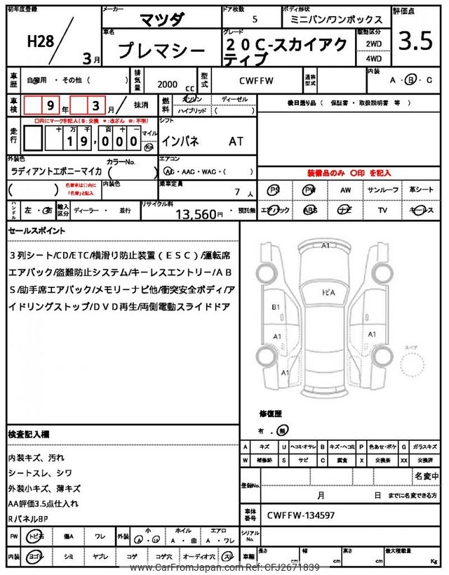 Mazda Premacy 2016 for sale in Tanzania - Tzs. 31,137,868 (Duty not paid)