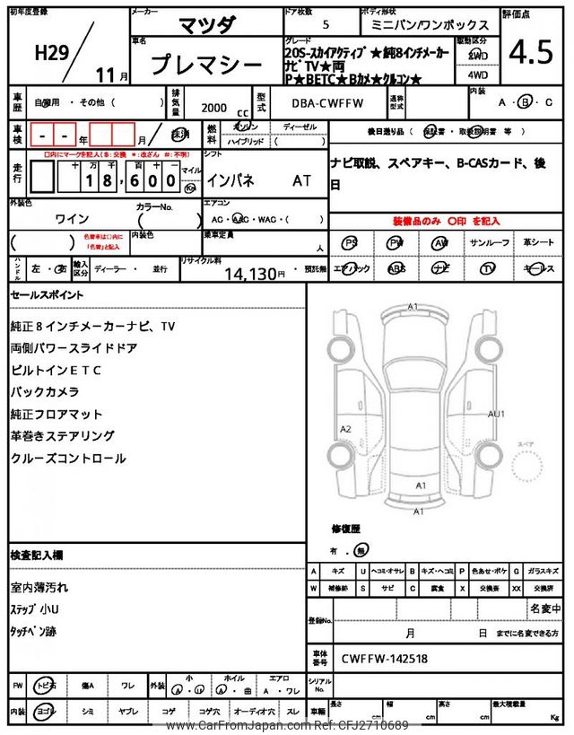 Mazda Premacy 2017 for sale in Tanzania - Tzs. 38,017,960 (Duty not paid)