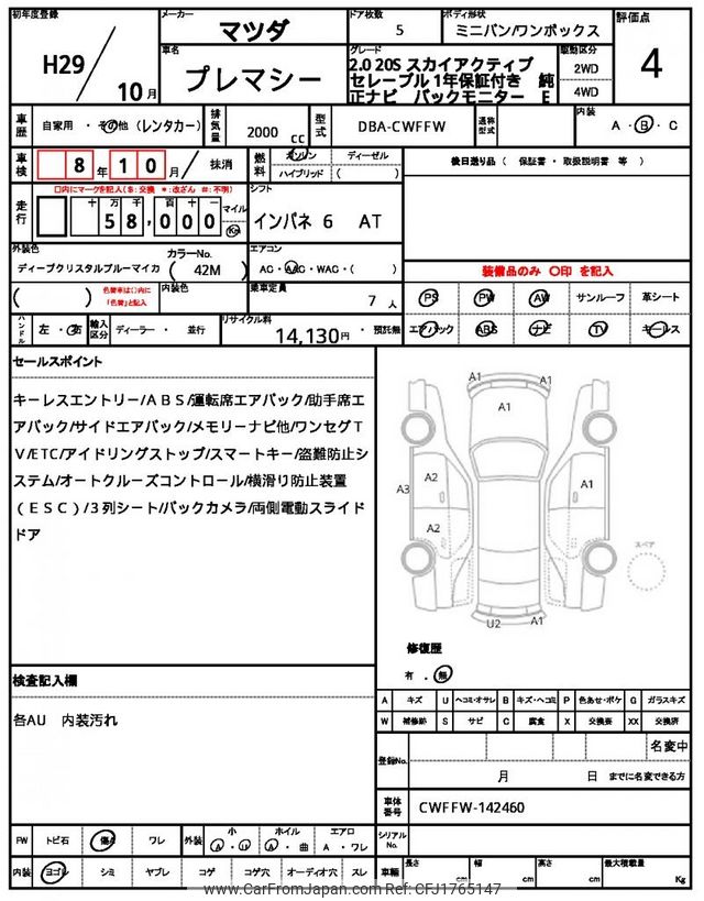 Mazda Premacy 2017 for sale in Tanzania - Tzs. 35,945,112 (Duty not paid)