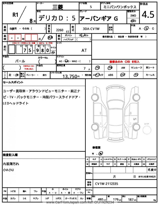 Mitsubishi Delica D5 2019 for sale in Tanzania - Tzs. 87,512,530 (Duty not paid)