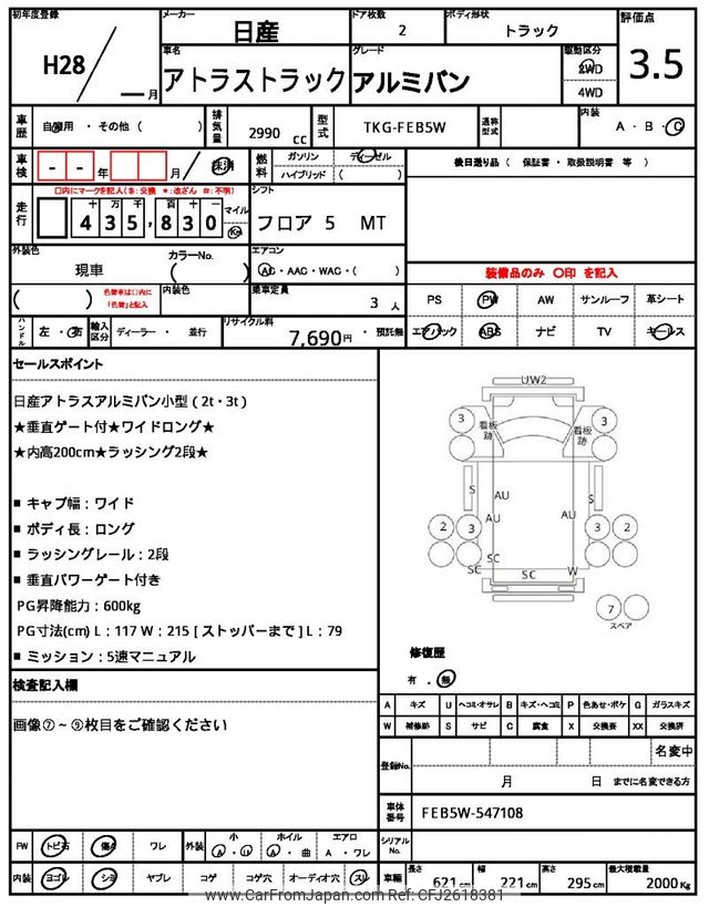 Nissan Atlas 2016 for sale in Tanzania - Tzs. 59,894,560 (Duty not paid)