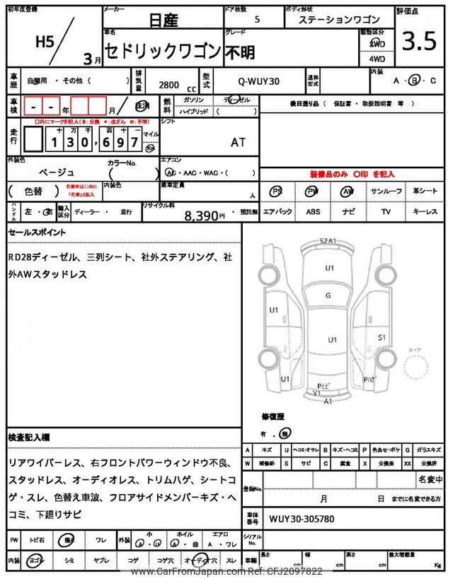 Nissan Cedric Wagon 1993 for sale in Tanzania - Tzs. 42,716,024 (Duty not paid)