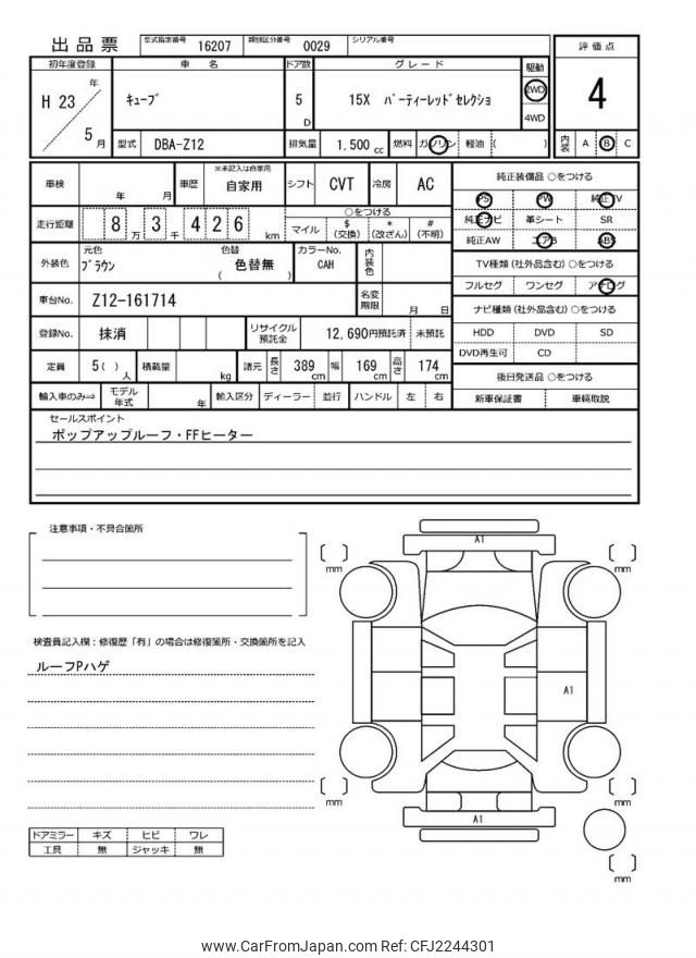 Nissan Cube 2011 for sale in Tanzania - Tzs. 29,447,364 (Duty not paid)