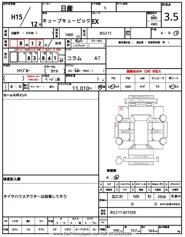 Nissan Cube Cubic 2003 for sale in Tanzania - Tzs. 12,811,510 (Duty not paid)