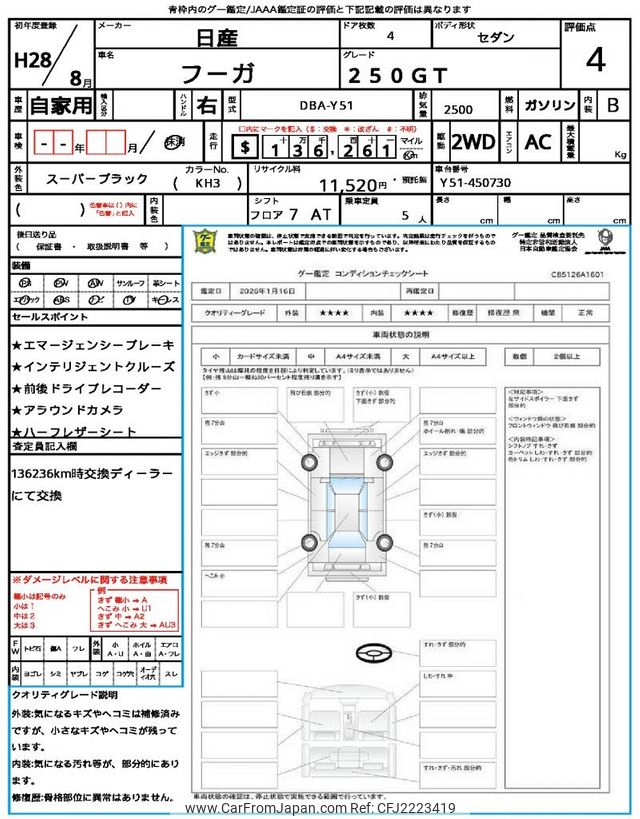 Nissan Fuga 2016 for sale in Tanzania - Tzs. 40,041,008 (Duty not paid)