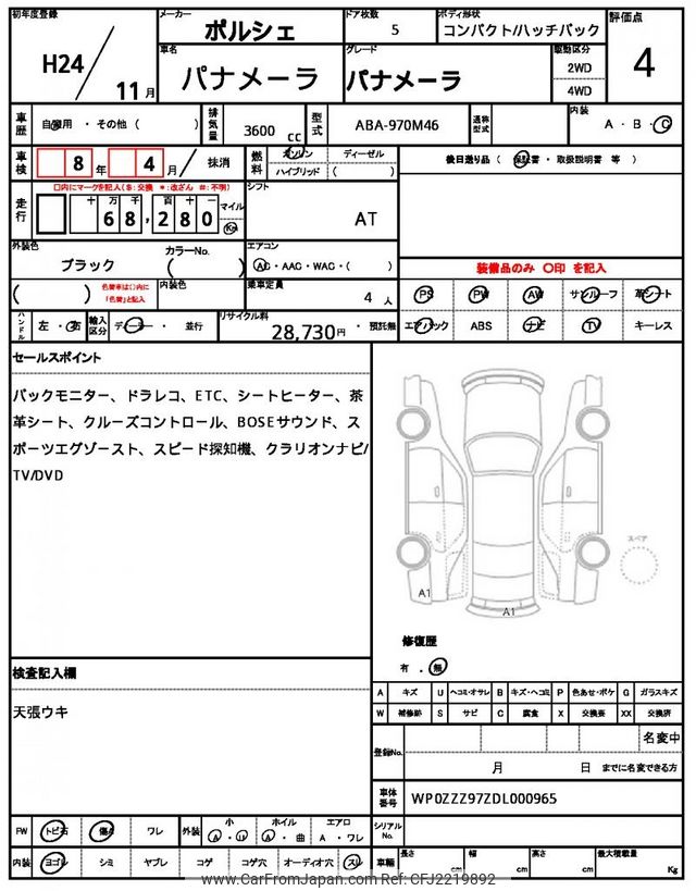 Porsche Panamera 2012 for sale in Tanzania - Tzs. 49,893,128 (Duty not paid)