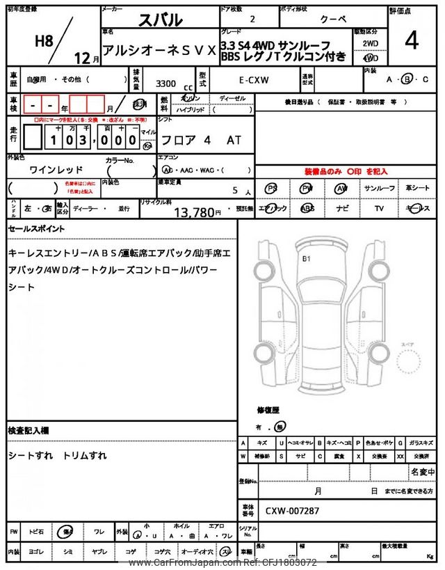 Subaru Alcyone SVX 1996 for sale in Tanzania - Tzs. 46,178,612 (Duty not paid)