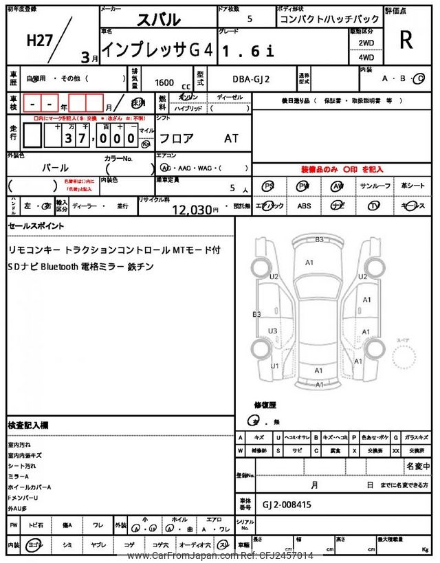 Subaru Impreza G4 2015 for sale in Tanzania - Tzs. 20,388,652 (Duty not paid)