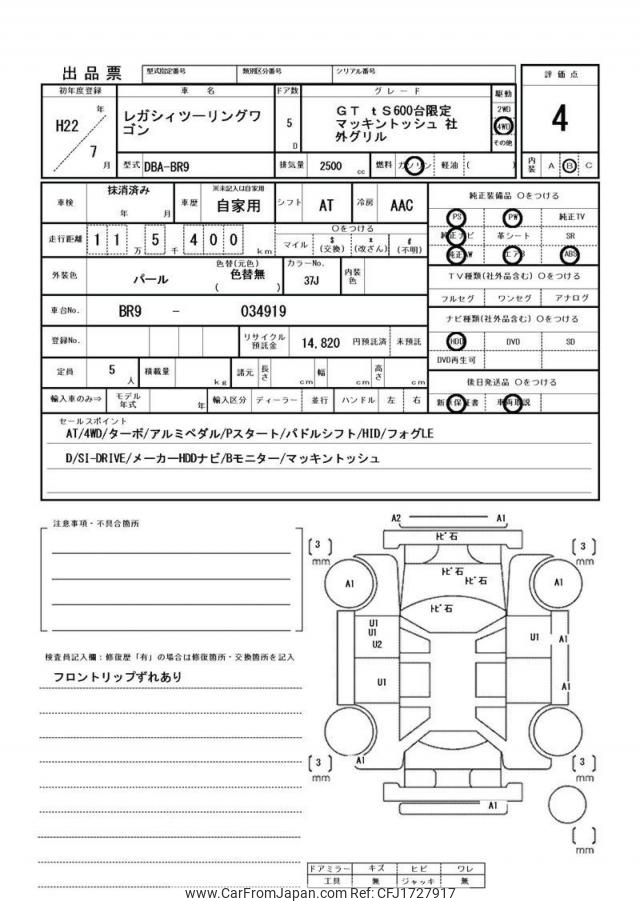 Subaru Legacy Touring Wagon 2010 for sale in Tanzania - Tzs. 32,216,696 (Duty not paid)