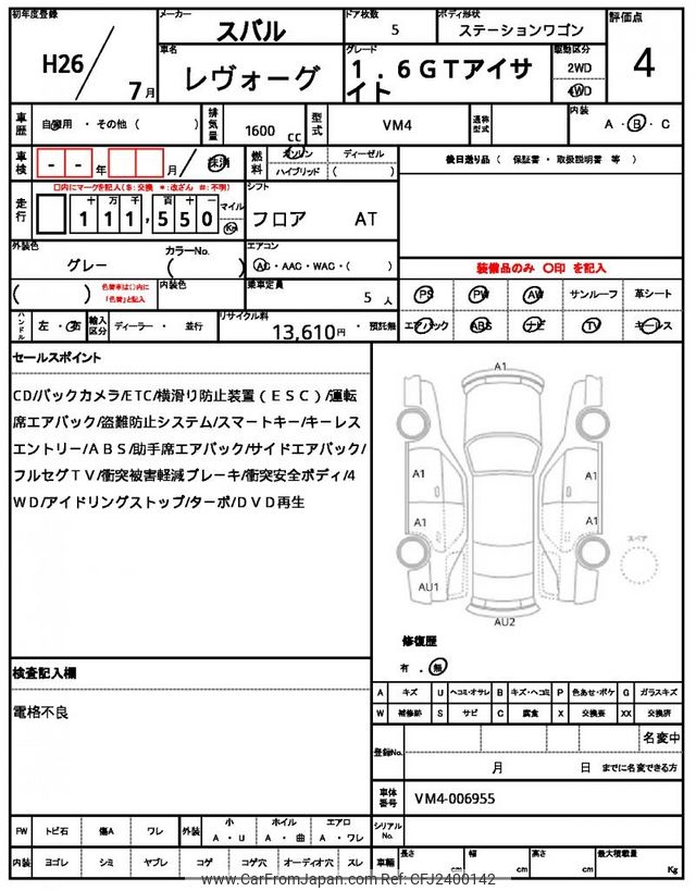 Subaru Levorg 2014 for sale in Tanzania - Tzs. 23,775,972 (Duty not paid)