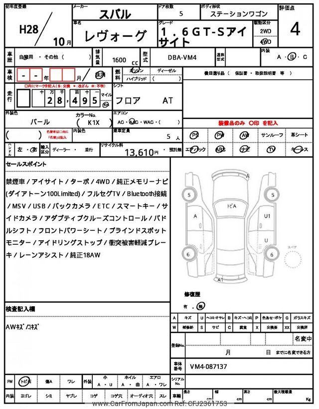 Subaru Levorg 2016 for sale in Tanzania - Tzs. 48,195,904 (Duty not paid)