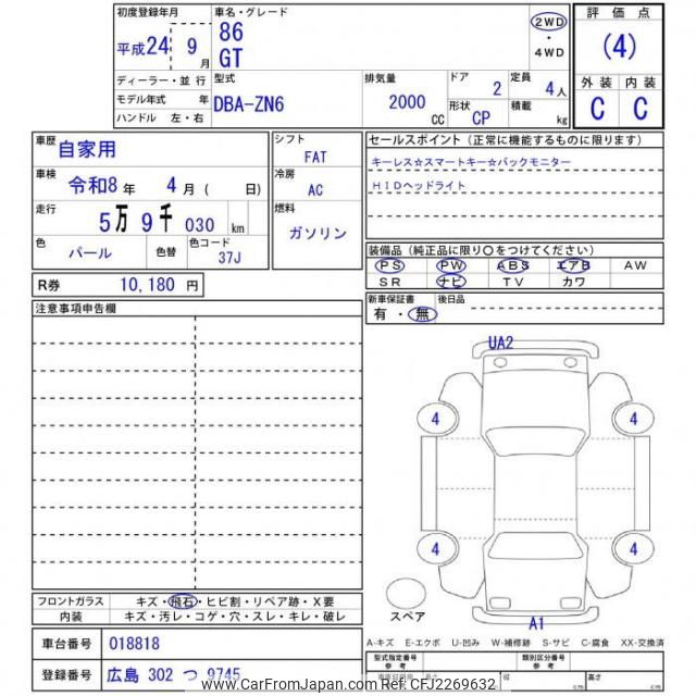 Toyota 86 2012 for sale in Tanzania - Tzs. 41,475,380 (Duty not paid)