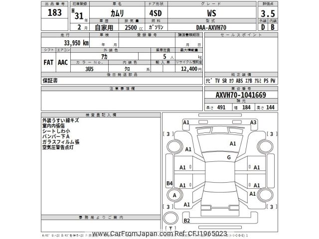 Toyota Camry 2019 for sale in Tanzania - Tzs. 72,848,256 (Duty not paid)