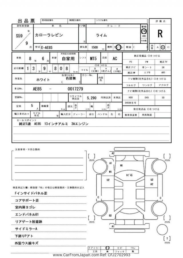 Toyota Corolla Levin 1984 for sale in Tanzania - Tzs. 64,203,992 (Duty not paid)