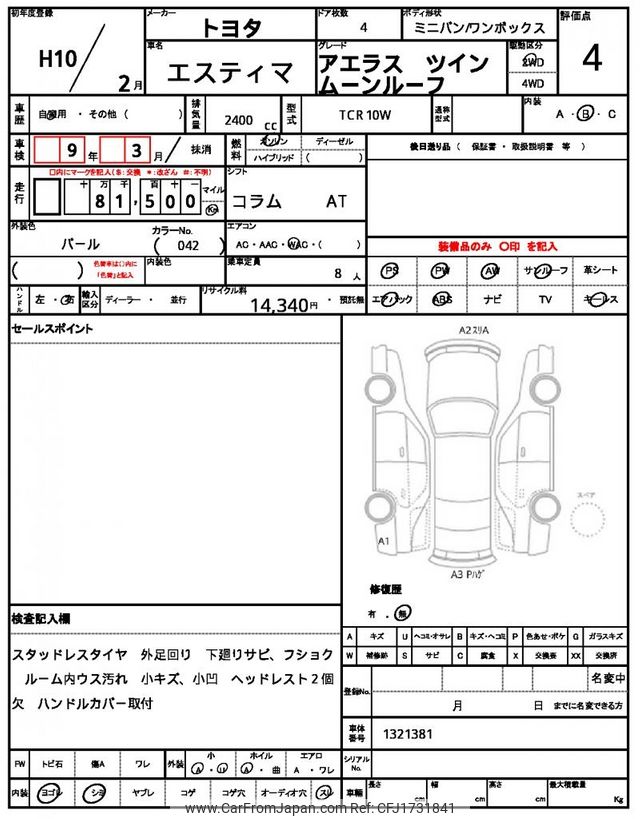 Toyota Estima 1998 for sale in Tanzania - Tzs. 37,156,588 (Duty not paid)