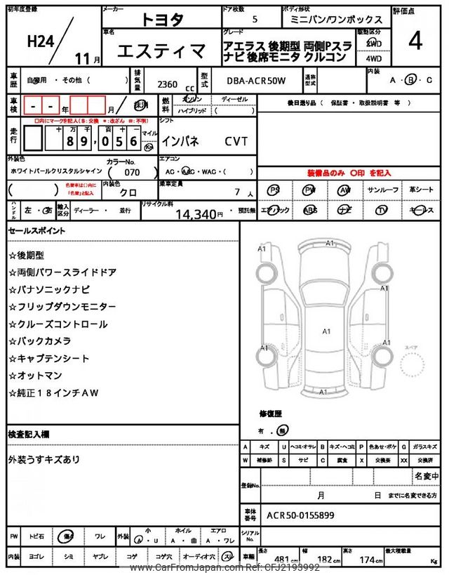 Toyota Estima 2012 for sale in Tanzania - Tzs. 30,327,580 (Duty not paid)