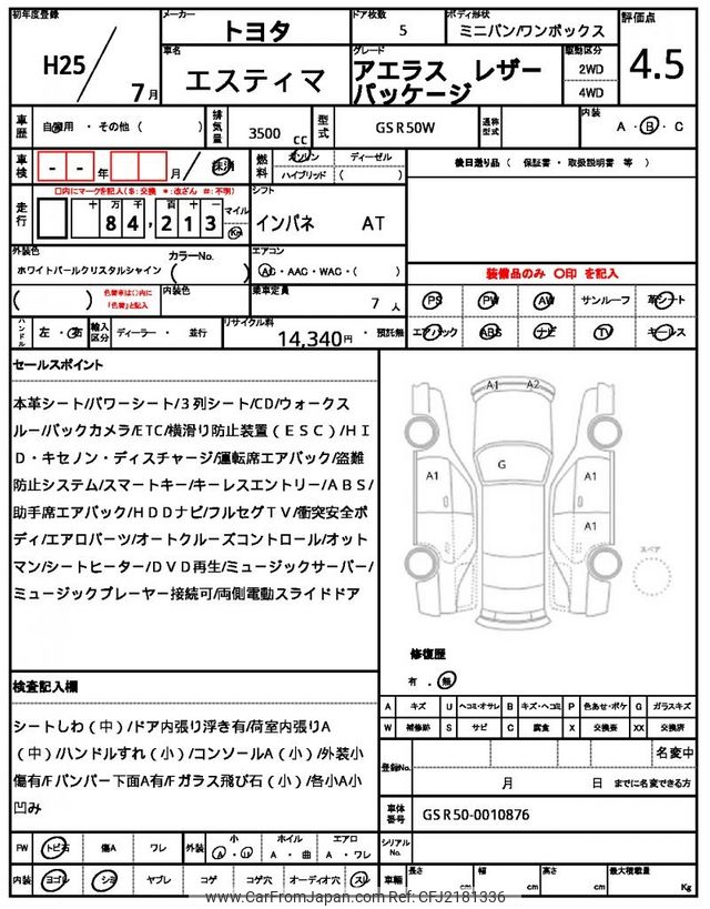 Toyota Estima 2013 for sale in Tanzania - Tzs. 40,866,744 (Duty not paid)