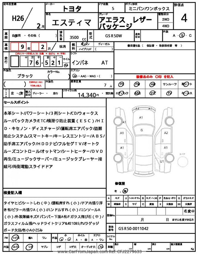 Toyota Estima 2014 for sale in Tanzania - Tzs. 45,155,048 (Duty not paid)