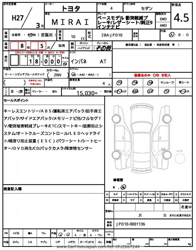 Toyota Mirai 2015 for sale in Tanzania - Tzs. 29,453,960 (Duty not paid)