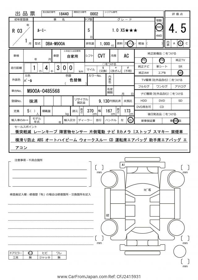 Toyota Roomy 2021 for sale in Tanzania - Tzs. 35,149,420 (Duty not paid)