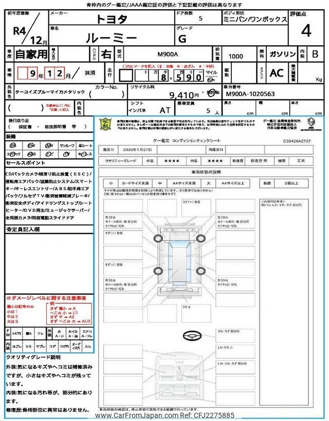 Toyota Roomy 2022 for sale in Tanzania - Tzs. 45,311,488 (Duty not paid)