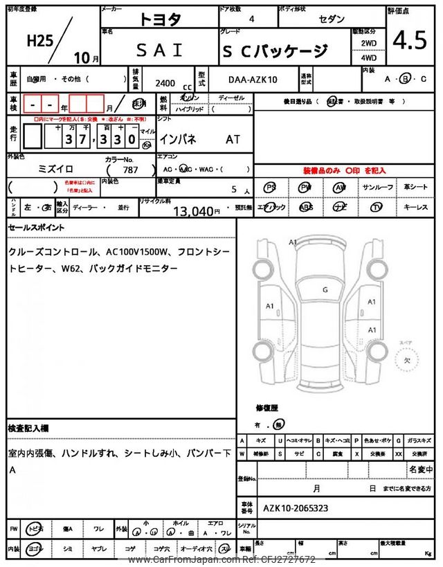 Toyota SAI 2013 for sale in Tanzania - Tzs. 30,225,326 (Duty not paid)