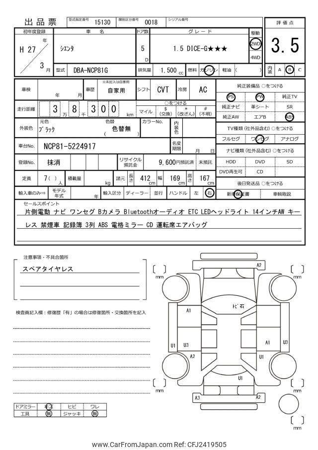 Toyota Sienta 2015 for sale in Tanzania - Tzs. 29,905,916 (Duty not paid)