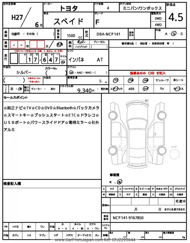 Toyota Spade 2015 for sale in Tanzania - Tzs. 27,971,580 (Duty not paid)