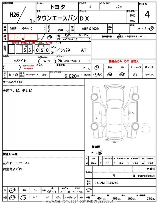 Toyota Townace Van 2014 for sale in Tanzania - Tzs. 31,159,738 (Duty not paid)