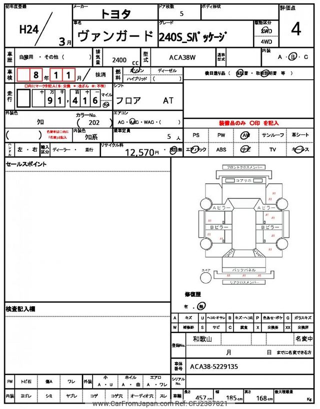 Toyota Vanguard 2012 for sale in Tanzania - Tzs. 34,534,920 (Duty not paid)