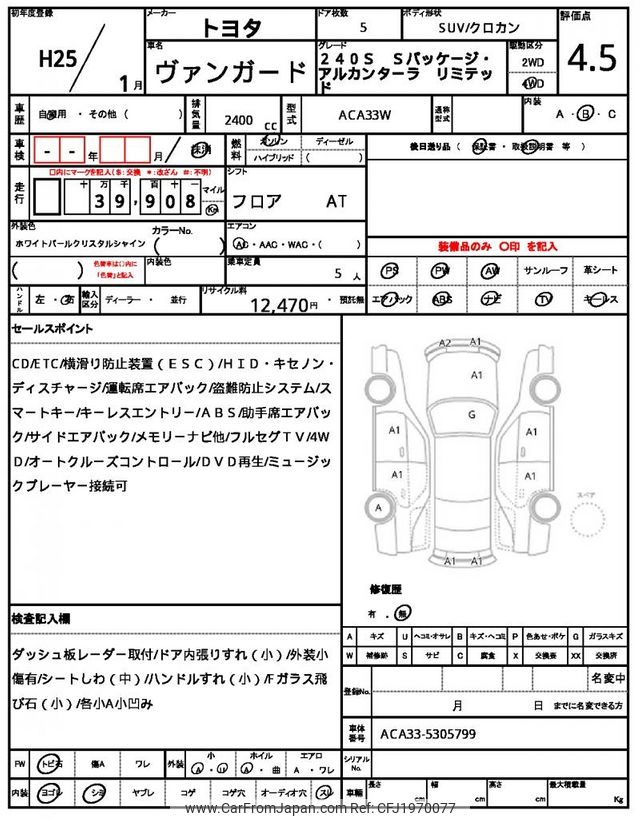 Toyota Vanguard 2013 for sale in Tanzania - Tzs. 44,374,888 (Duty not paid)