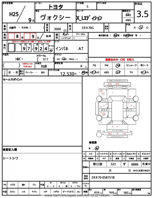Toyota Voxy 2013 for sale in Tanzania - Tzs. 24,227,748 (Duty not paid)