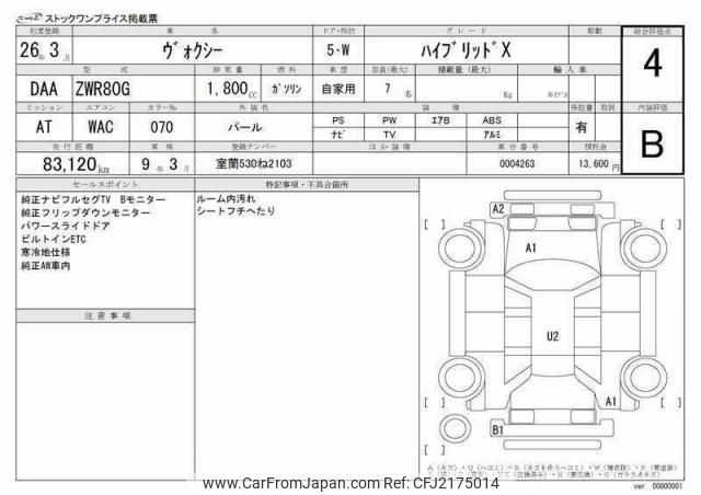 Toyota Voxy 2014 for sale in Tanzania - Tzs. 41,435,920 (Duty not paid)