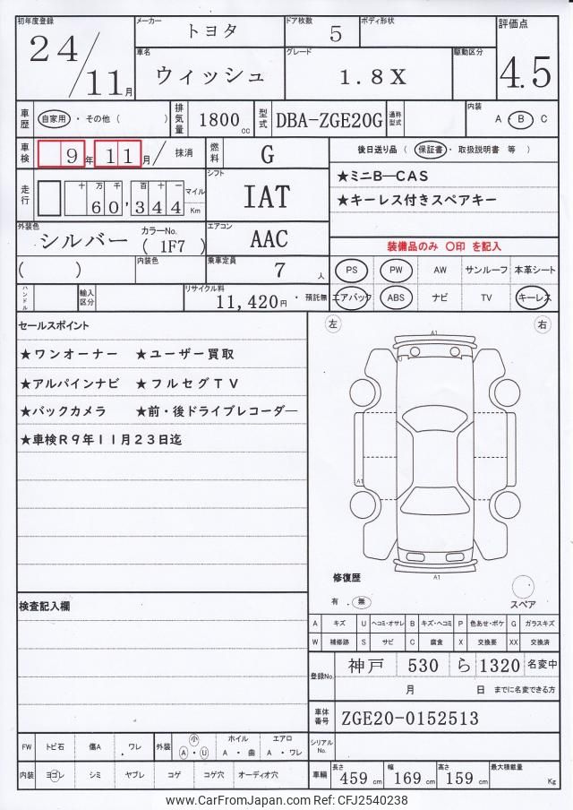 Toyota Wish 2012 for sale in Tanzania - Tzs. 32,803,624 (Duty not paid)
